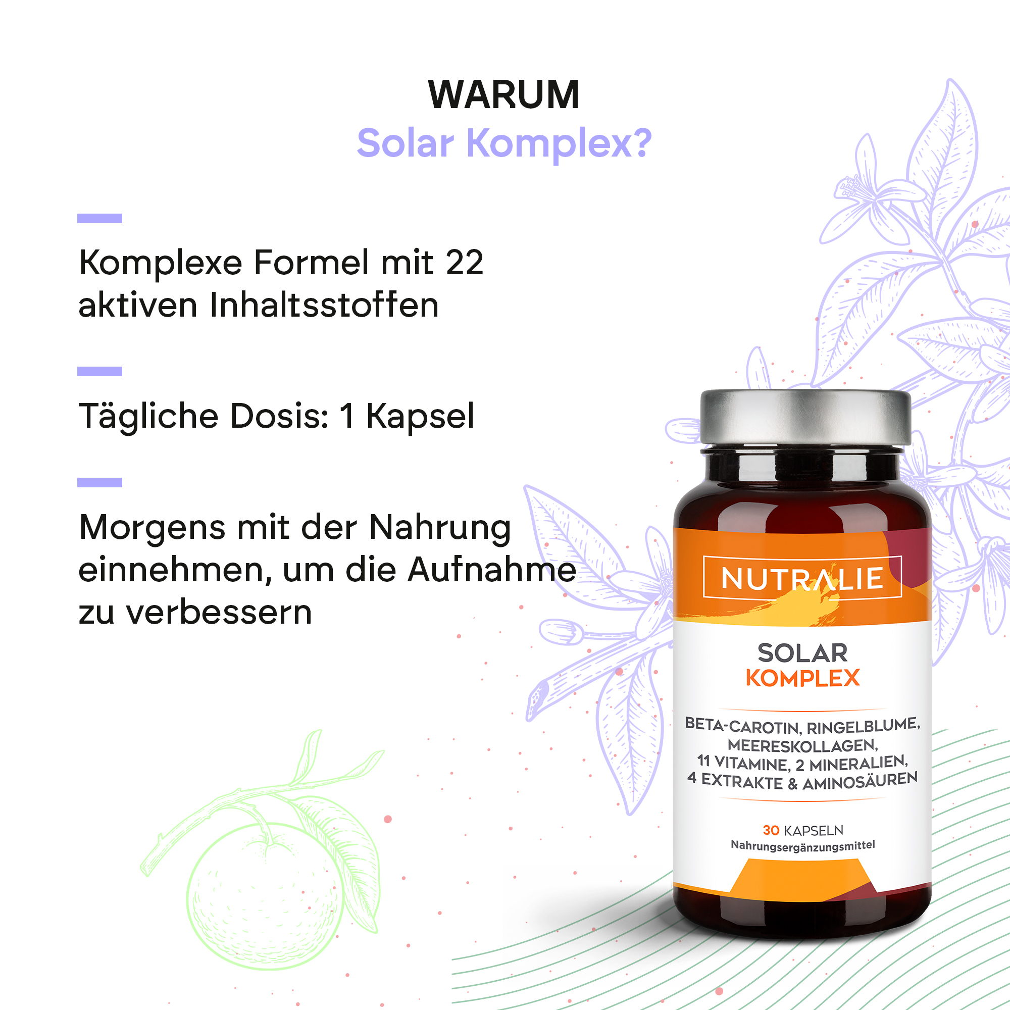 Solar Complex von Nutralie trägt dank Kupfer zur normalen Hautpigmentierung bei.