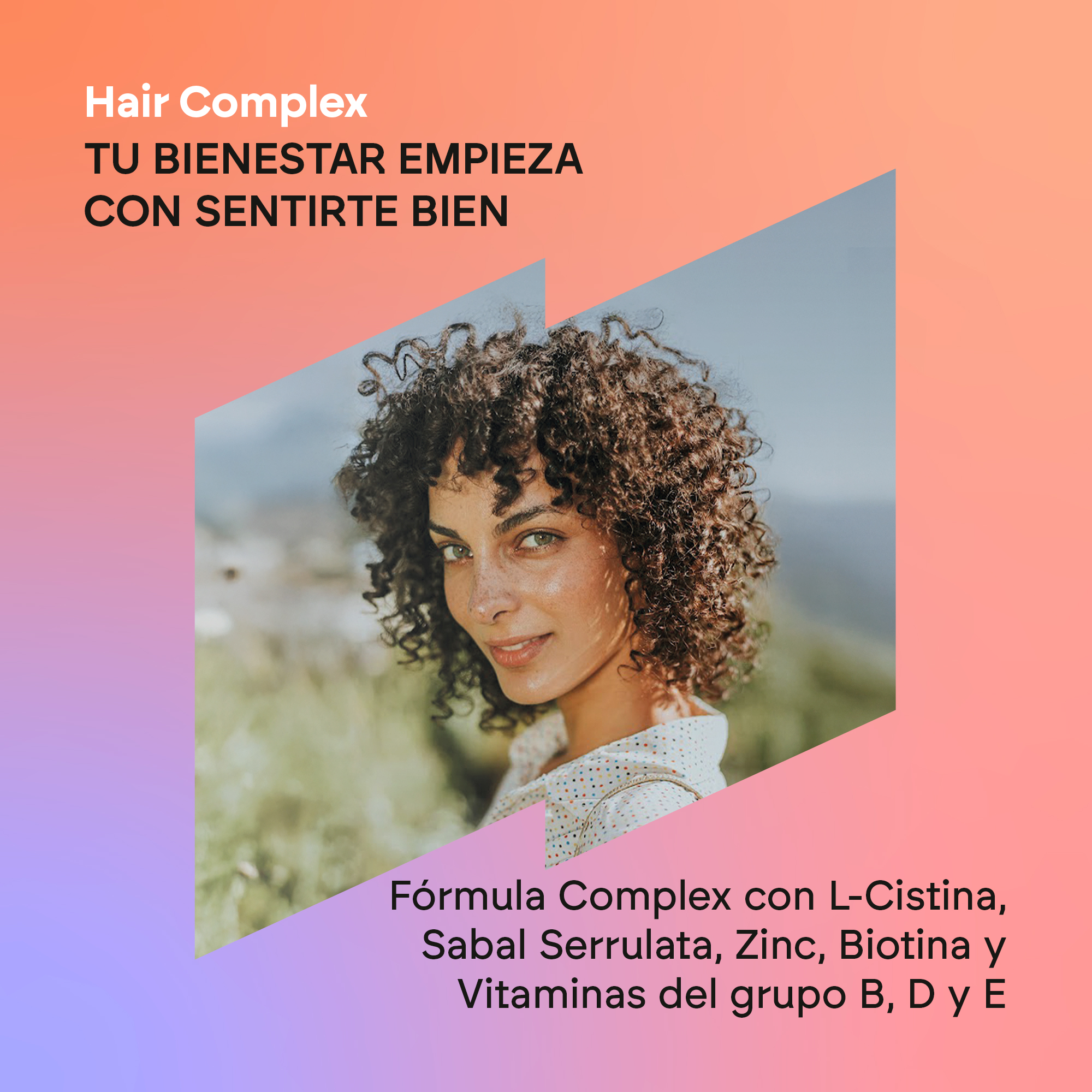 Hair Complex de Nutralie, gracias al Zinc incluido en su fórmula, contribuye al mantenimiento del cabello en con diciones normales. El Zinc también contribuye al mantenimiento de la piel y de las uñas en condiciones normales.