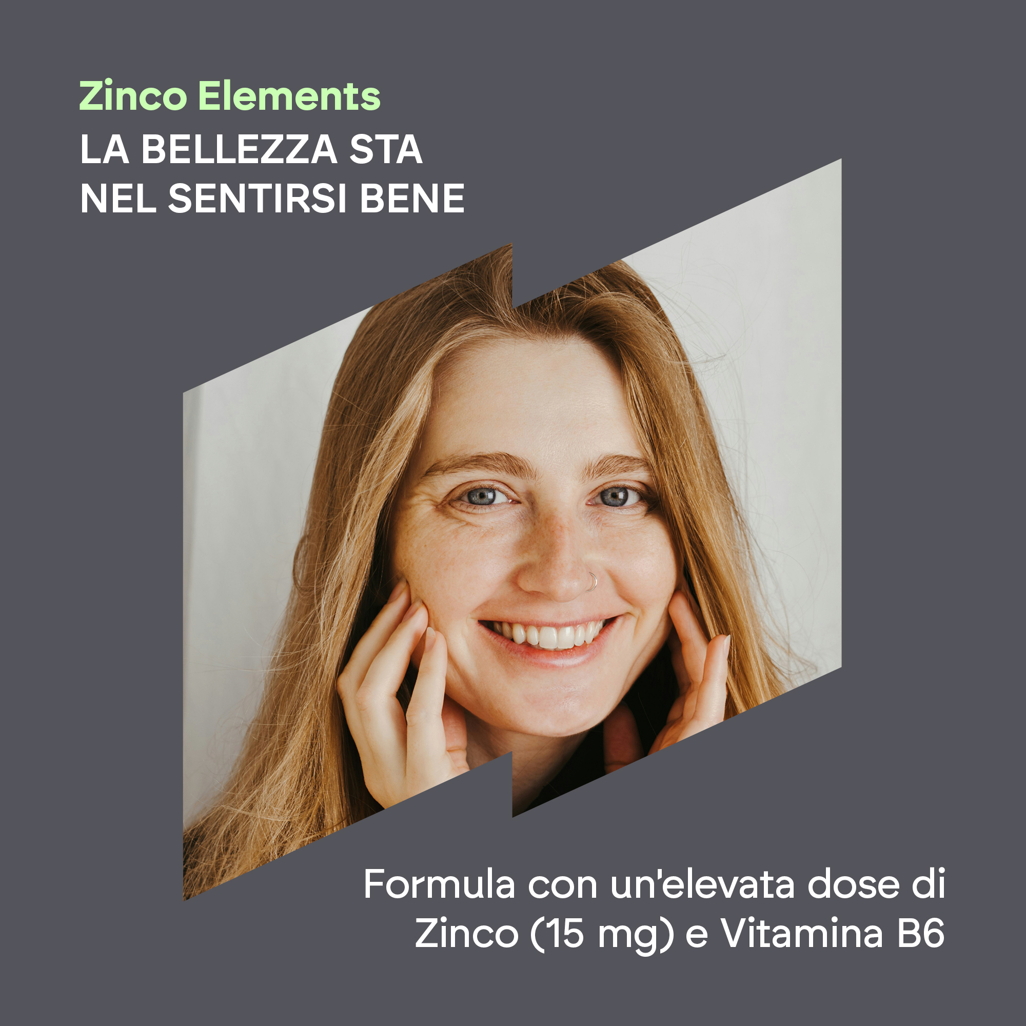 Zinc Elements è formulato con un alto dosaggio di zinco, che contribuisce al normale metabolismo dei macronutrienti e degli acidi grassi.