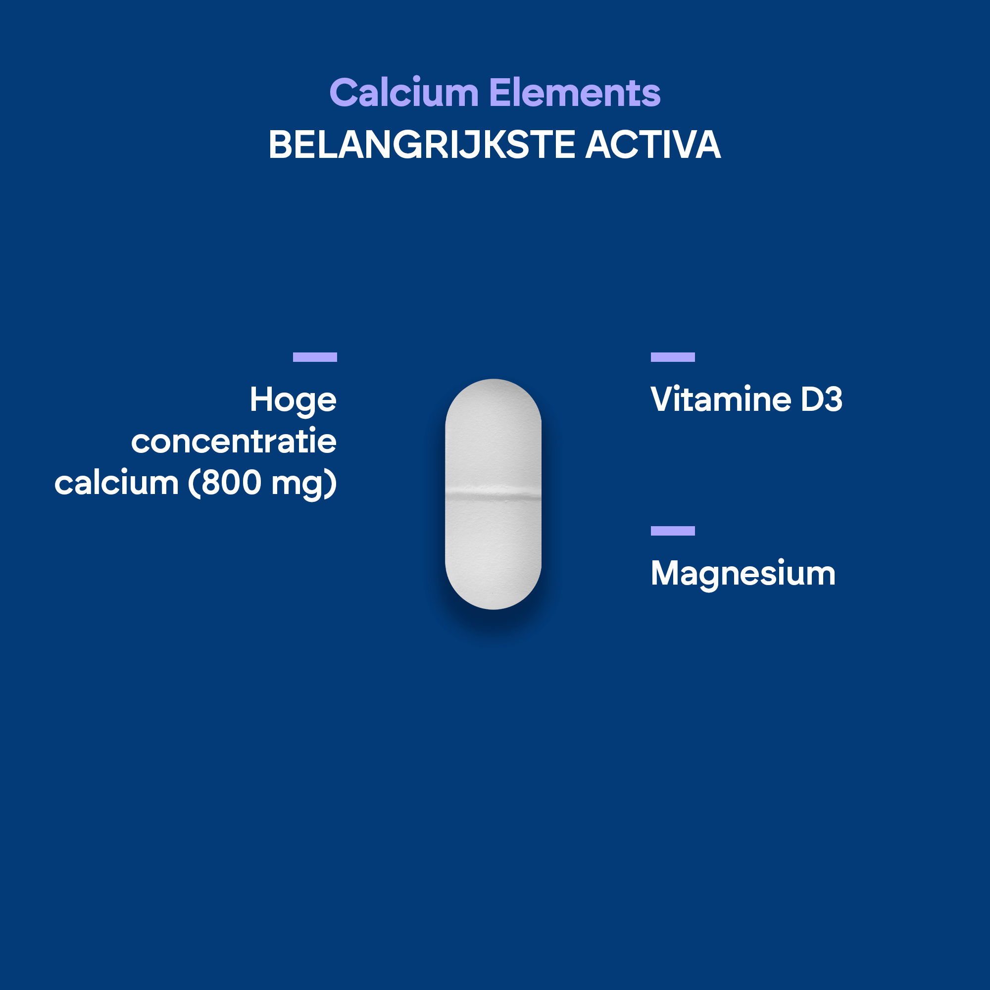 Calciumcarbonaat, magnesiumbisglycinaat, vulstof (microkristallijne cellulose), glansmiddelen (hydroxypropylmethylcellulose, microkristallijne cellulose en stearinezuur), cholecalciferol (vitamine D), antiklontermiddelen (magnesiumstearaat en siliciumdioxide).
