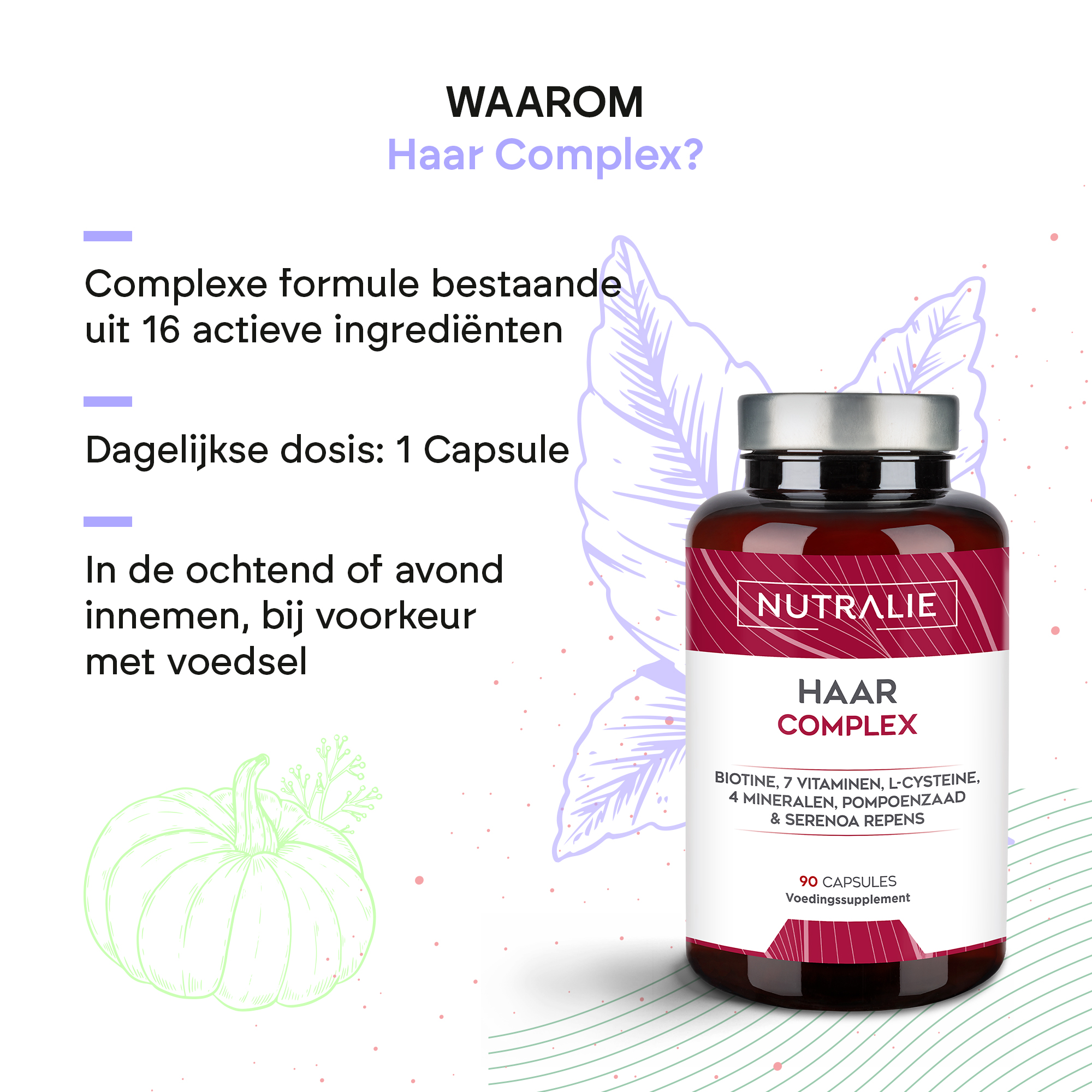 Nutralie Hair Complex draagt dankzij het zink in de formule bij aan het behoud van normaal haar. Zink draagt ook bij aan het behoud van een normale huid en nagels.