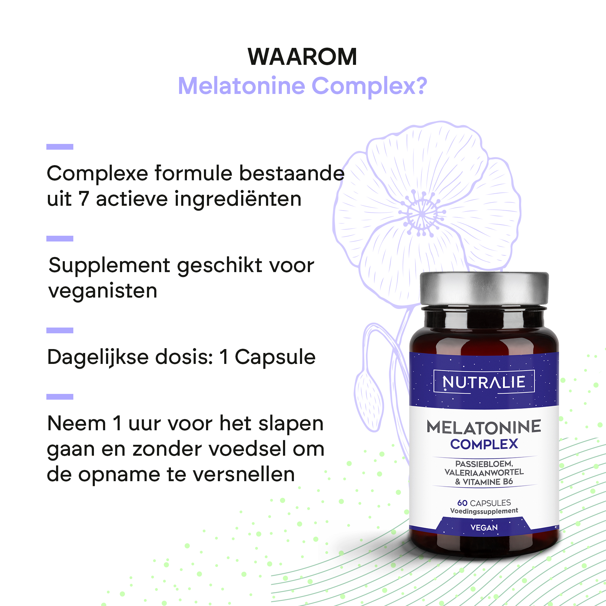 Nutralie’s Melatonine Complex helpt, dankzij melatonine, de tijd die nodig is om in slaap te vallen te verkorten.*