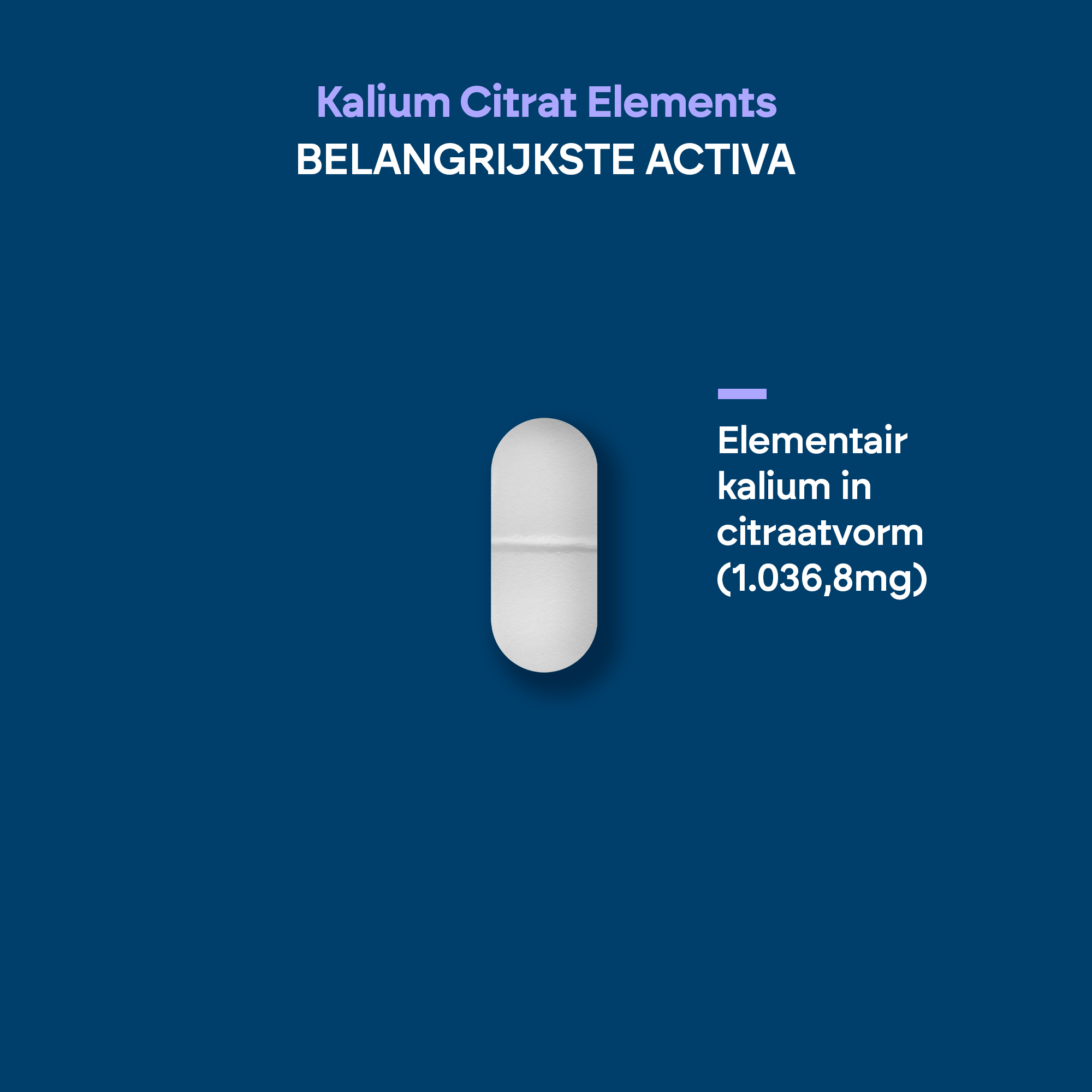 Nutralie’s Kaliumcitraat Elementen is samengesteld met een hoge dosis elementair kalium in citraatvorm (1.036,8 mg).
